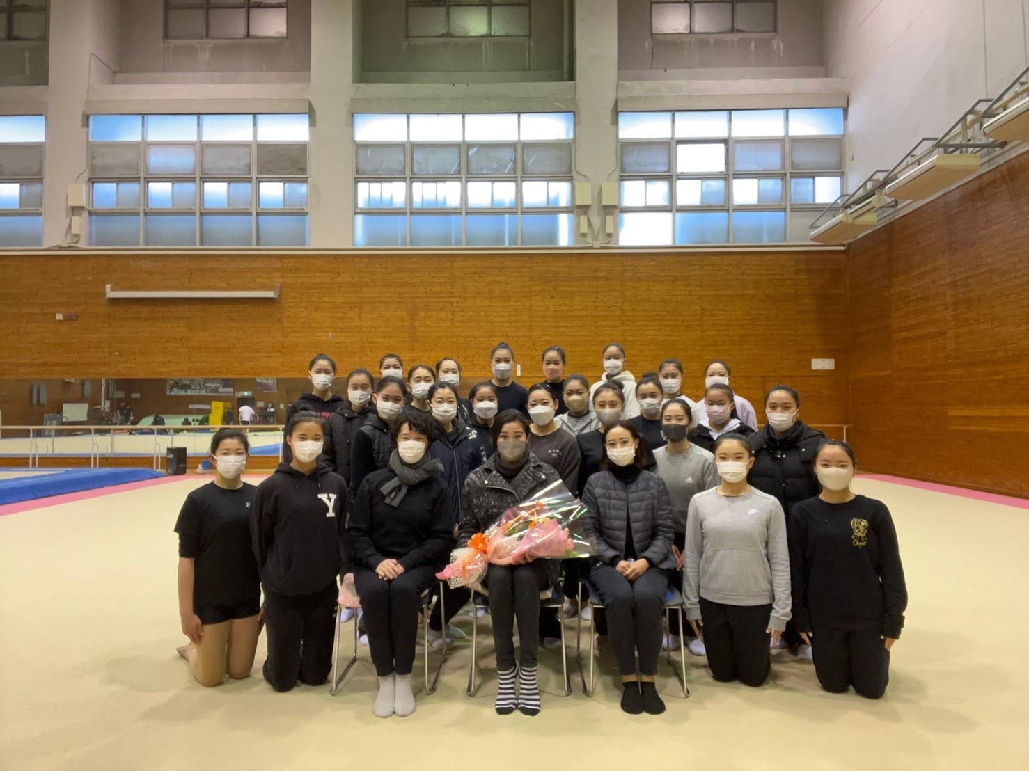 フェアリージャパンの松原梨恵選手がご挨拶に来てくださいました。 松原選手が今までひたむきに新体操と向き合ってきた姿に部員一同、とても感銘を受けました。また、国士舘大学卒業生としてご活躍されたことを誇りに思います。 松原選手はこれで引退となってしまいますが、新たなご活躍とご健闘をお祈り致します。 国士舘大学新体操部一同も、さらに飛躍出来るよう頑張ります。