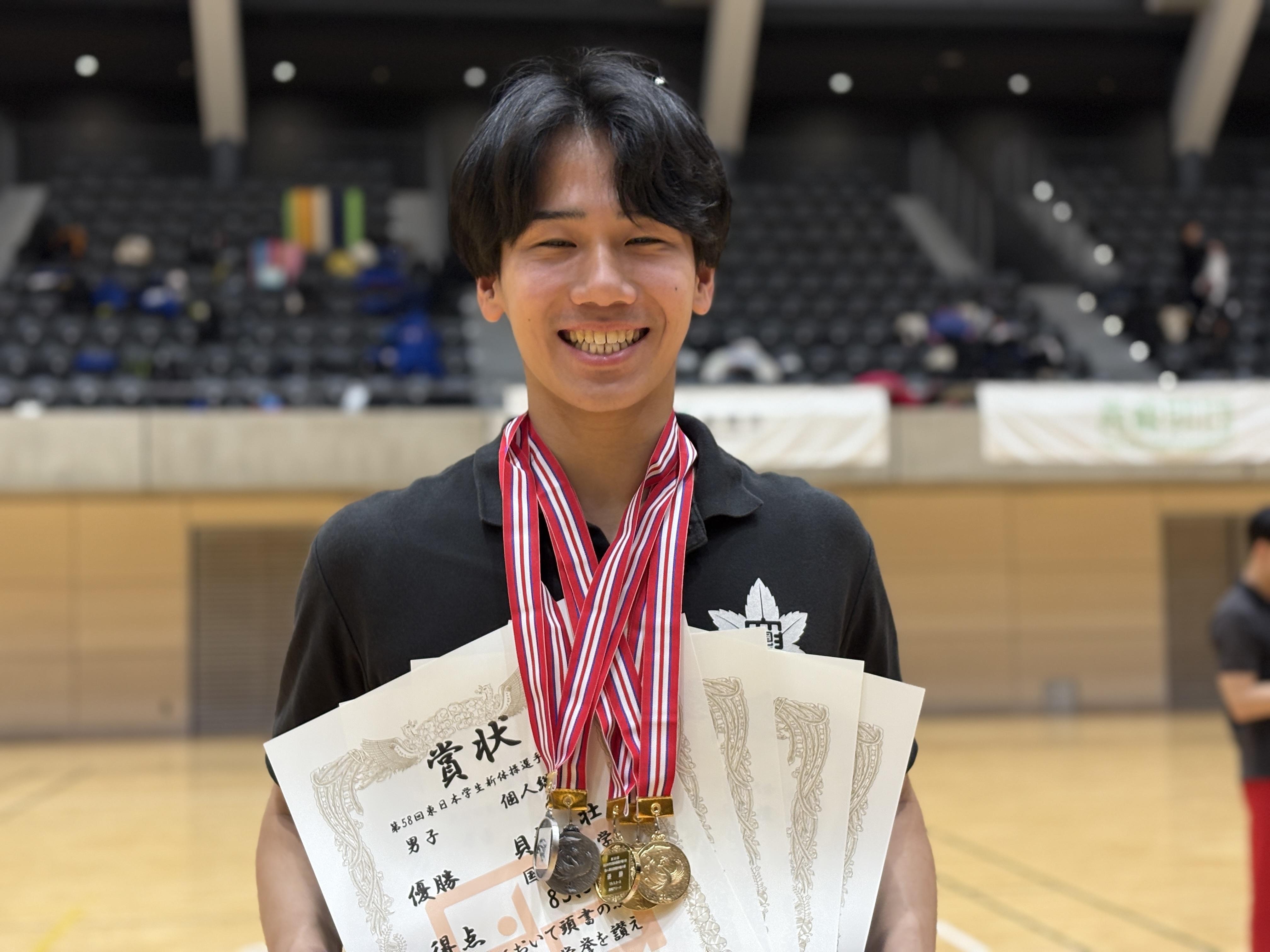 個人では貝瀨壮(体育3年)が嬉しい初優勝を獲得しました!種目別でも2種目で優勝し、夏のインカレに弾みをつけています。