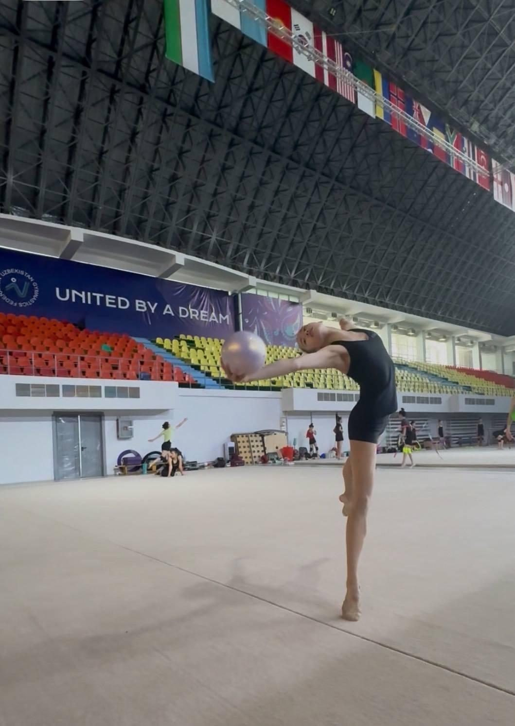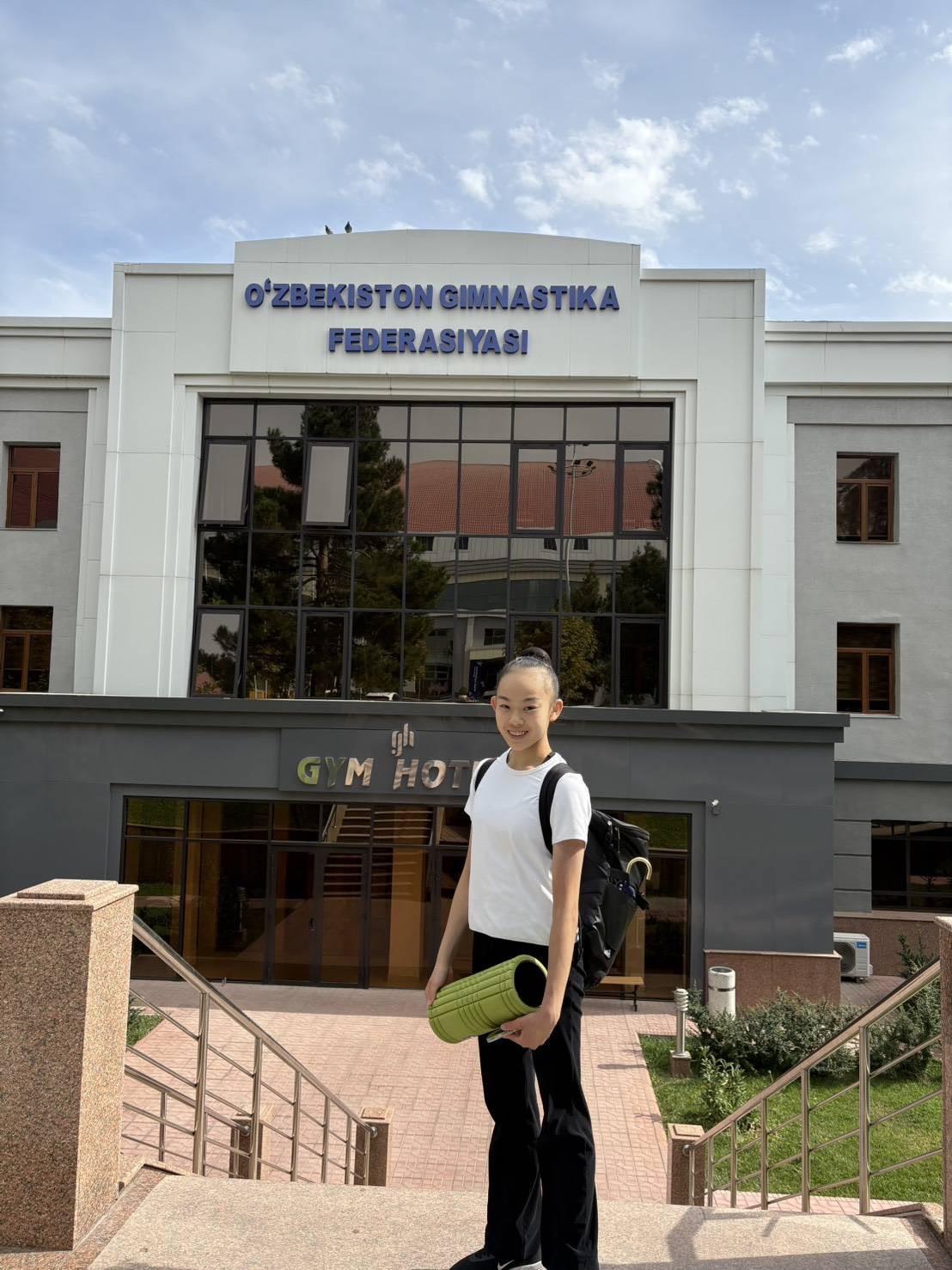 ウズベキスタン合宿では、初めて言葉が通じない環境の中で演技作りをしました。 最初は不安もありましたが、先生が身振り手振りで伝えてくださり、進めることができました。 一番印象に残ったのは、私には思いつかないような想像力豊かな動きや技を教えて頂いたことです。自分の表現の幅の狭さに気づくと同時に、もっと自由に発想して、動きを作りだしていくものだと感じました。 言葉がなくても伝わる演技力や、想像力の大切さを学びました。 作って頂いた演技をしっかり仕上げ、自分のものにしていけるように頑張ります。